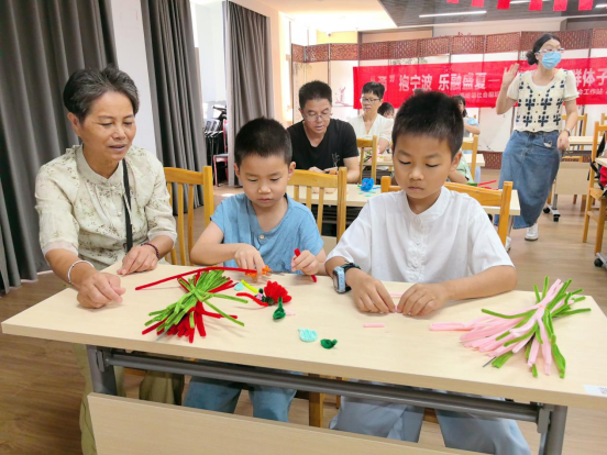 文化浸润,巧手扭出环保情 紫薇社区则通过“甬城风情入指尖,巧手扭出‘茶花情’”活动,将宁波本土文化与环保理念紧密结合。活动中,孩子们在了解宁波民俗和非遗技艺的同时,还利用环保扭扭棒制作出了象征坚韧与热情的山茶花。社区工作人员提前准备了红、粉、绿等颜色的环保扭扭棒,并发放了图文教程,强调使用环保材料的重要性。志愿者耐心指导孩子们缠绕、塑形、固定,同时提醒不要随意丢弃多余的材料。“原来山茶花有这么多颜色,就像宁波有好多有趣的习俗一样,而且我们做手工还能保护环境,真好。”孩子们的话,展现了他们对家乡文化的热爱和对环保的认同。